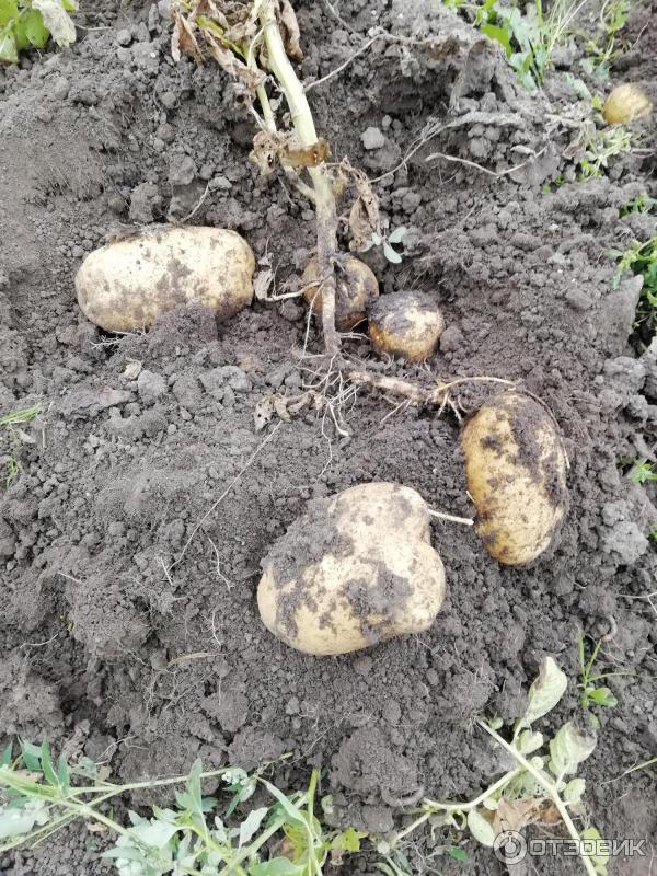 Реколтата от картофи беше много голяма, с 3 до 8 големи картофа на гнездо. 3 кофи реколта от 10 гнезда.