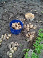 Единственият проблем е, че кората на клубените ми се получи малко груба, може би от твърде дългото им престой в земята. Мисля, че добивът от шест растения, без никаква обработка или тор, беше доста добър. Нямаше много големи клубени, повече средни и малки. Около една кофа.