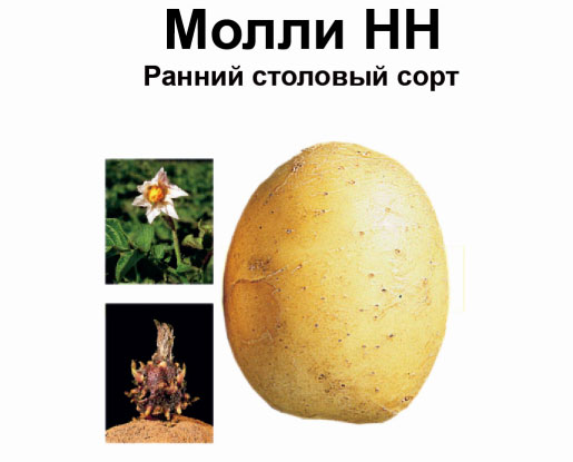 Дължим сорта Моли на немски селекционери, които са се заели да разработят картофи с ултраранни срокове на зреене и са успели.