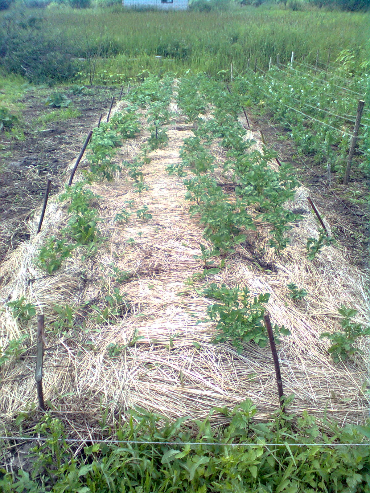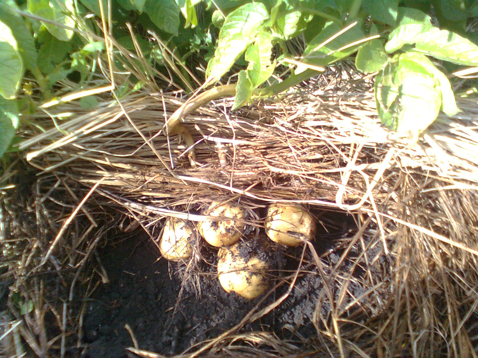 През 2012 г. проведох експеримент: отгледах картофи под слама. Вярно, не беше слама, а миналогодишна житна трева, която бях ожънал със сърп през пролетта от съседен изоставен парцел (косата не можеше да го достигне; на практика цялата беше на земята), но е трудно да се нарече сено.