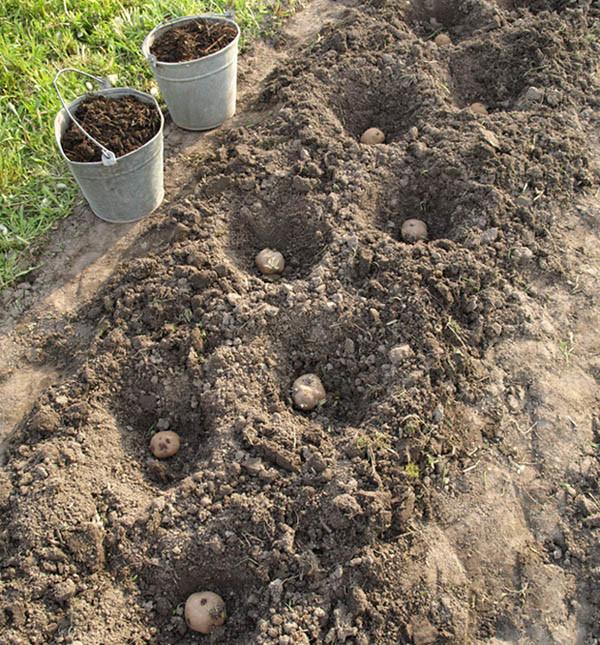 Картофите могат да се засаждат както в бразди, така и в гребени. Всеки градинар избира свой собствен модел на засаждане. Ключът е да се поддържа минимално разстояние от 30 см между дупките. Ширината на пътеката трябва да бъде 50-70 см, а дълбочината на засаждане 20 см.