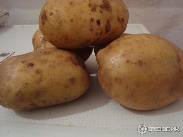 + Големи картофи, гладки, със сини очи, пръстта се отделя лесно от тях.