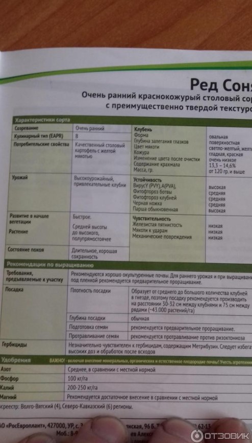 - 6 Характеристики на засаждане на сорта картофи Червена Соня