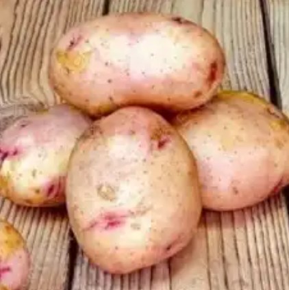 Грудките са доста едри, с тегло между 70 и 150 г. Те са с овална форма, понякога леко сплескани в краищата. Кожицата е дебела, светлорозова, със синкави петна по повърхността и малък брой очи.