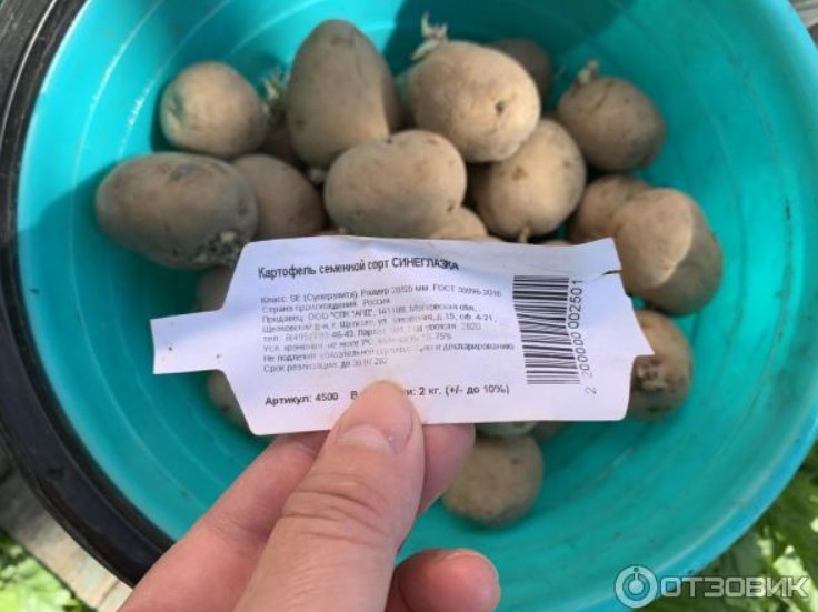 Семената от картофи „Синеглазка“ на НК „Руский Огород“ се продават в 2-килограмова мрежеста торба за 259 рубли. Грудките са от категория „Супер Елит“. Семената пристигнаха с отлично качество, всички равномерни, с малки, здрави кълнове.