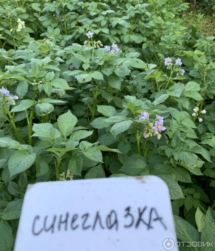 Картофът Синеглазка е отличен за приготвяне на най-деликатното картофено пюре и е силно устойчив на болести. Въпреки това, дъждът понякога може да доведе до гниене на клубените в дупката. Градинарите отбелязват, че класическият сорт Синеглазка не се съхранява добре.