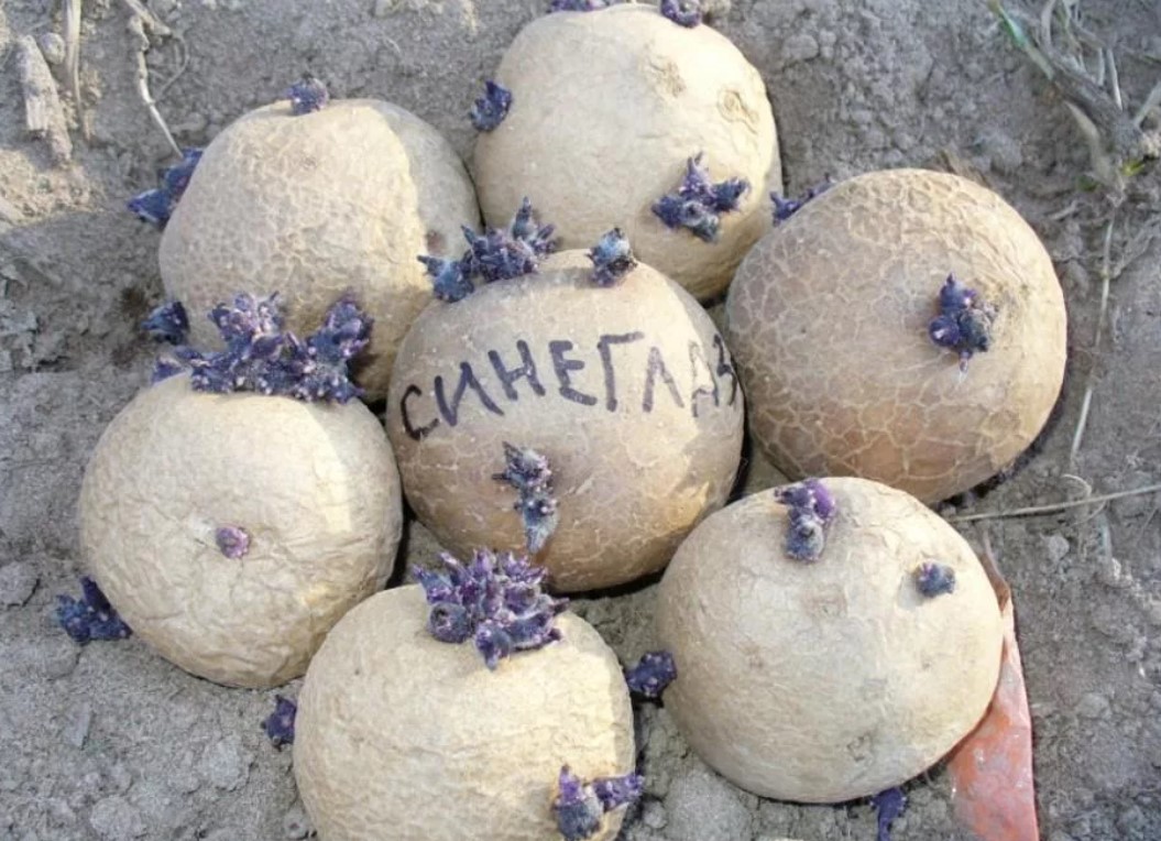 И още една тайна. Картофите узряват напълно за 90-110 дни. Но можете да ги изкопаете след 40-50 дни. Ето защо Синеглазка се нарича още 40-дневен картоф. Картофите просто имат дълъг вегетационен период. Лесно е да получите млади, ранни картофи, ако извадите посадъчния материал от мазето и го разпръснете на светло поне две седмици преди засаждането. Поставете съд с вода наблизо. След това засадете и съберете реколтата след 40 дни.