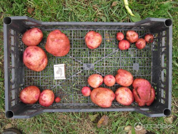 Потребител prettylotta, Русия, Московска област, 23 ноември 2020 г. Преди седмица приключихме градинарския сезон 2020, събрахме реколтата и сега с удоволствие ѝ се наслаждаваме. Никога не съм си мислила, че ще напиша ревю за картофи, но ще го направя. Купихме картофи за разсад в края на март, както обикновено - три различни сорта. И продавачът не спираше да хвали колко прекрасен е сортът "Skarb", колко повече място има, колко голяма е нивата - няма проблем - разширете я, продължавайте да садите, това е чиста радост. Не, не сме се разширили; напротив, увеличаваме площта, която засаждаме всяка година. Но все пак купихме сорта "Skarb", просто е любопитен. Това беше съкровището, което първо започна да пониква на полето. Засадихме го в края на април (Владимирска област). Месец по-късно зеленината вече беше такава: На преден план са редици от съкровища —> Това, което не ми харесва: картофите са малко ронливи. Независимо дали ги пържите, задушавате или варите, те се ронят отгоре. Не обичам да използвам тези картофи в супи и картофено пюре; затова използваме само ронливи червени картофи. Ето как изглеждат картофите, когато се нарежат и изпържат със зеленчуци; Изобщо не е видът, който искате за пържене. Все пак бих му дал отлична оценка. Въпрос на лични предпочитания е. Картофите нямат недостатъци: кълняемостта и добивът са прилични. Благодаря ви за вниманието към ревюто! Всичко най-хубаво