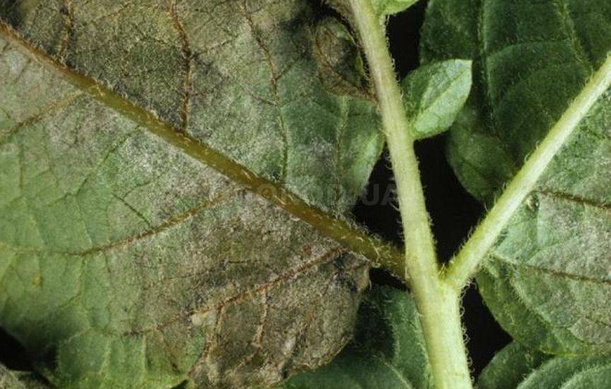 - Бронзиране на листа — Това заболяване се причинява от недостиг на калий. То е особено често срещано при картофи, отглеждани в торфена почва. Симптомите включват деформация и бронзов цвят на долните листа.