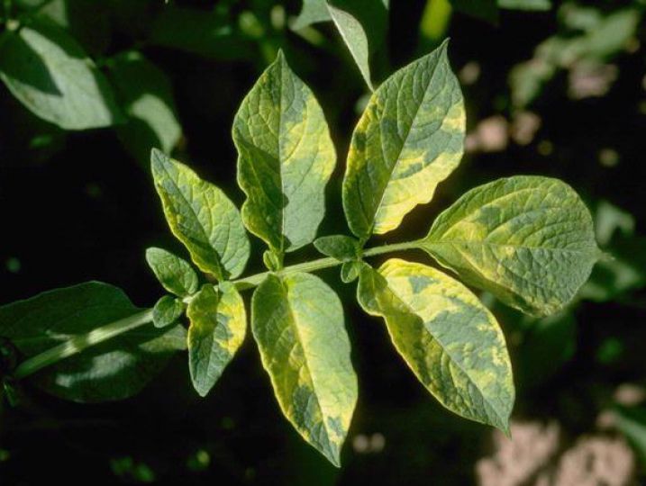 - Петнистост — грудките и листата са увредени. Заболяването се характеризира с неравномерно оцветяване. Грудките губят вкусовите си качества, а добивите са значително намалени.