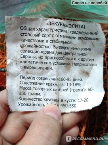 По съвет на съсед реших да купя картофи за семе от сорта Зекура, тъй като са вкусни, непретенциозни и дори са включени в Държавния регистър на Руската федерация.