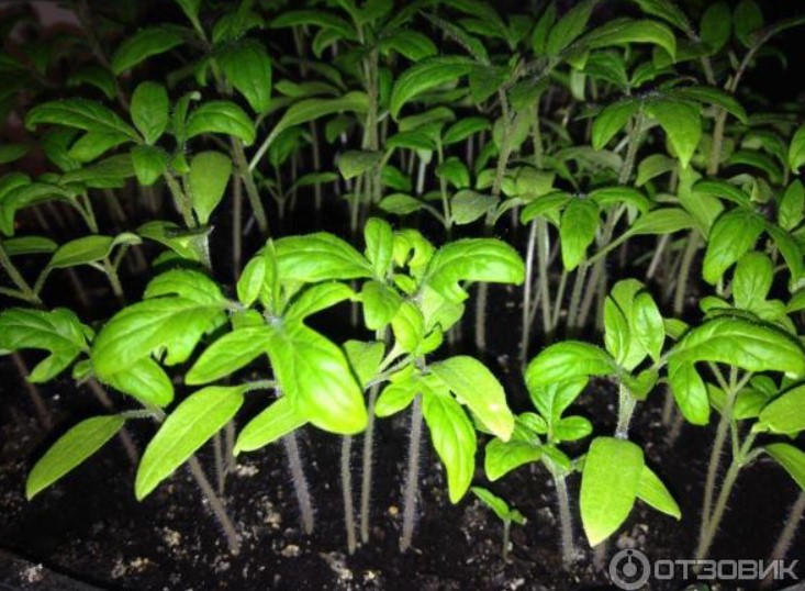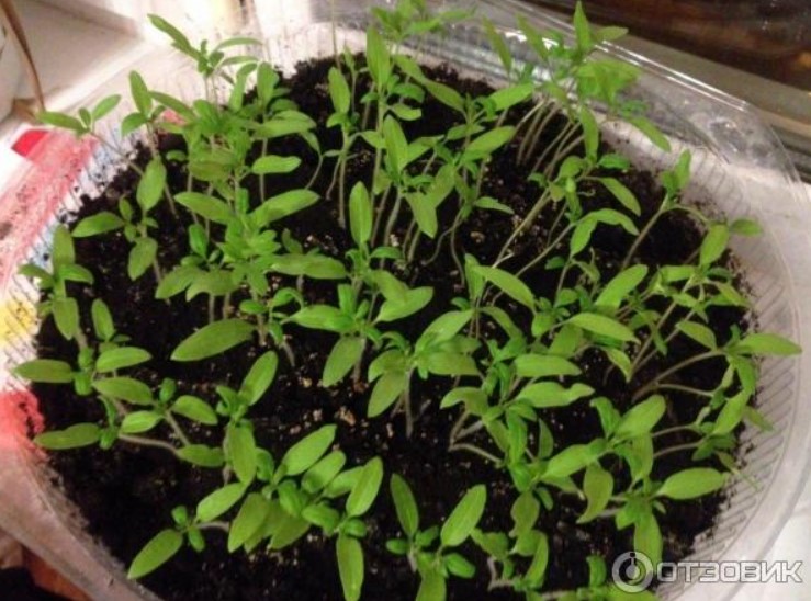 Доматите се отглеждат с разсад. Семената за разсад се засяват в средата до края на март. Първите кълнове се появяват в рамките на една седмица. След това контейнерите трябва да се преместят на добре осветено място. След появата на 3-4 листа се препоръчва разсадът да се пресади в торфени саксии.