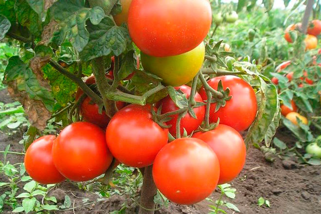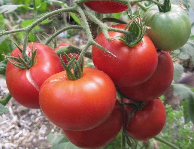 Среднозреещ детерминантен сорт за открита почва. Подходящ за салати и преработка в доматени продукти. | Кръгли, гладки, много плътни, червени, 72-109 г. Вкусът е добър и отличен. |