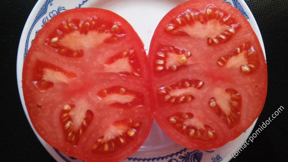 Ранозреещ детерминантен сорт за открита земя и оранжерии. Подходящ за салати, ецване, консервиране и преработка в доматени продукти. Студоустойчив. | Плоско-кръгли, леко оребрени, месести, червени, 100-120 г. Отличен вкус. |
