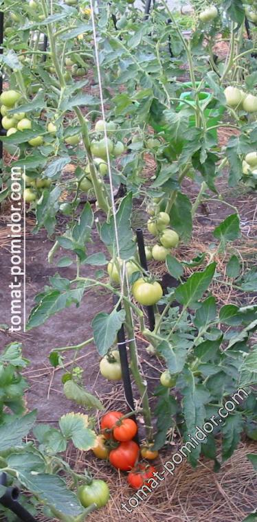 Растението е детерминантно и образува върхове след около 3-4 грозда, като гроздовете се образуват на всеки два листа. Поради това трябва да се оставят 2-3 странични издънки.
