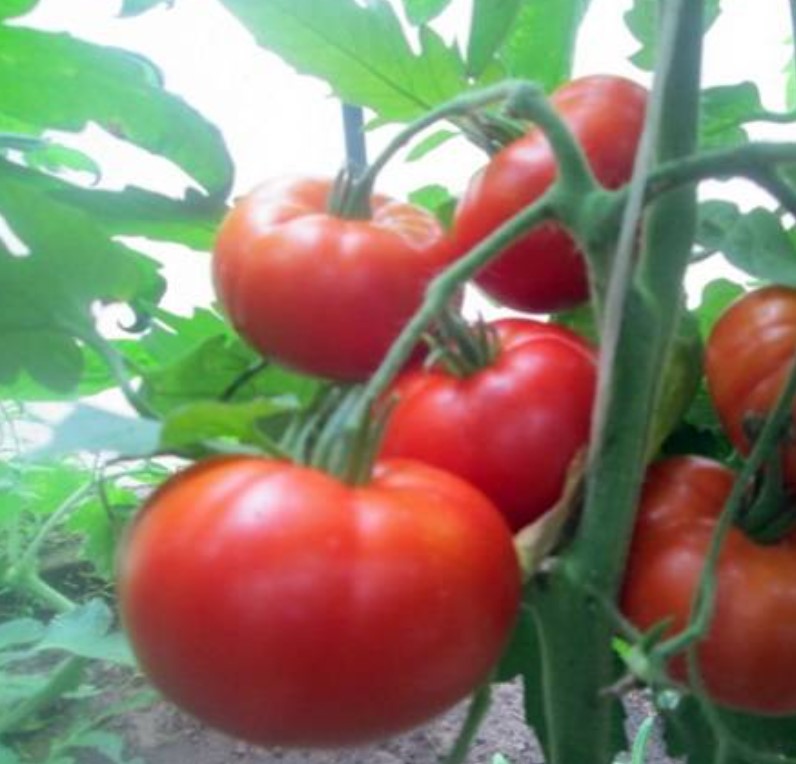 Средно ранен индетерминантен сорт за оранжерии. Подходящ за салати, предястия и преработка в доматени продукти. | Плоско-кръгли, леко оребрени, червени, 300-500 г (до 700 г). Отличен вкус. |