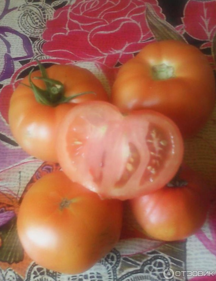 Ранен индетерминантен сорт от сибирски селекционери. За салати, сок и паста. | Сърцевидни, оребрени, розови, 400-600 г. Отличен вкус. |