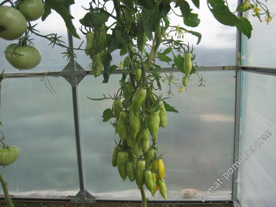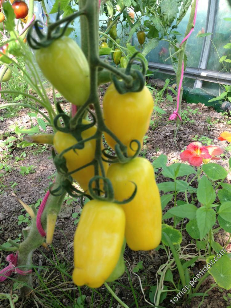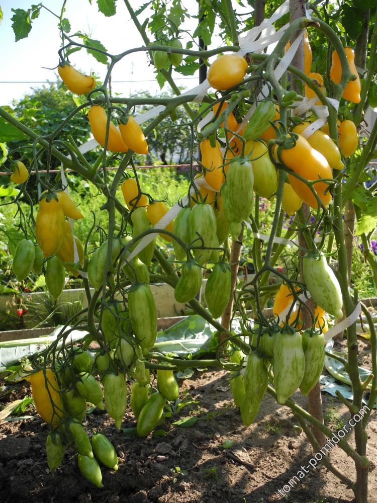 Доматът „Бананови крака“ е изумивал градинарите с изобилния си добив. При правилна техника на отглеждане храстите буквално са покрити с жълти плодове, които отдалеч приличат на малки банани.