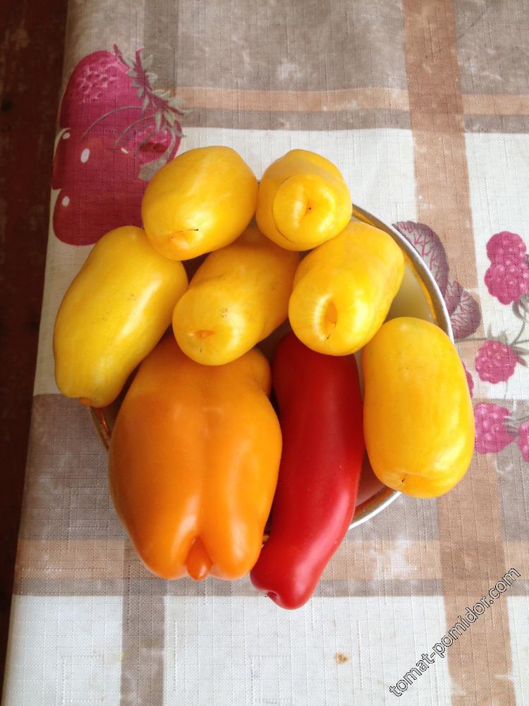 Среднозреещ полудетерминантен сорт за открита земя и оранжерии. Подходящ за салати и консервиране. | С форма на банан, гладки, жълти, 150-180 г. Добър до отличен вкус. |