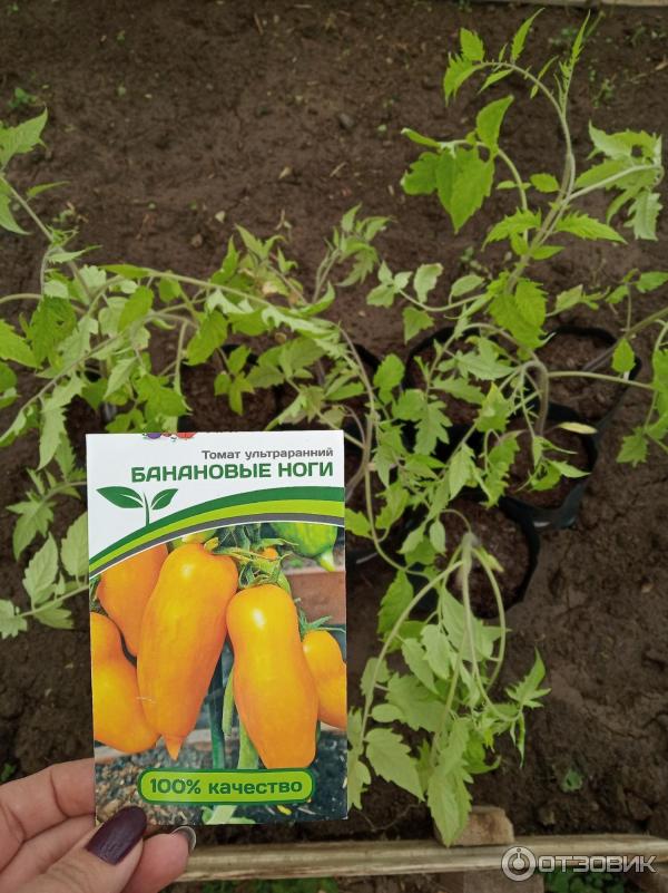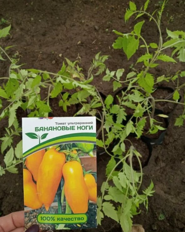 Разсадът изглеждаше крехък, но когато беше пресаден в земята, той укрепна и започна да се развива бързо. Има много домати на храста и все още показват цвят. Плодовете изглеждат точно като на снимката на опаковката. Но вероятно не са достатъчно големи, за да заслужат името „Бананови крака“. За мен не бяха ултраранни. Най-ранните домати бяха Монголското джудже.