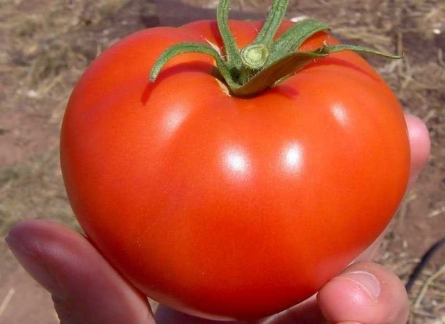 Плодовете са кръгли, но леко сплескани в краищата. Доматите са яркочервени, а повърхността им е впечатляващо оребрена. Няма зелено петно близо до дръжката, а плодът е с еднороден цвят. Кожицата е тънка, но твърда, което позволява реколтата да се съхранява дълго време и да се транспортира на дълги разстояния.