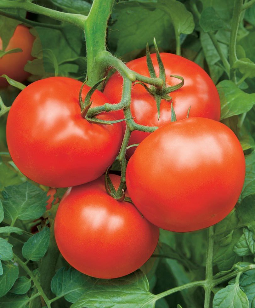 Ранозреещ детерминантен сорт за открита почва. Подходящ за салати. Продаваемост: 84-90%. | Плоско-кръгли, гладки, устойчиви на напукване, червени, 80-92 г. Добър до отличен вкус. |