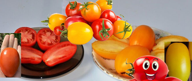 Ранно или къснозреещи, детерминантни или индетерминантни сортове за открита земя и оранжерии. Подходящи за консервиране, замразяване, сушене и салати. | С форма на слива, гладка, червена, оранжева или лилава, 50-120 г. Вкусът е добър до отличен. |