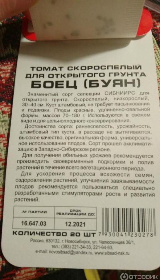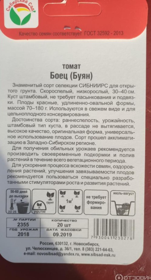 Бих искал да споделя впечатленията си от семената на домати „Боец“ (Буян). Най-много харесвам тези от „Сибирски сад“, въпреки че съм пробвал семена от този сорт и на други фирми.