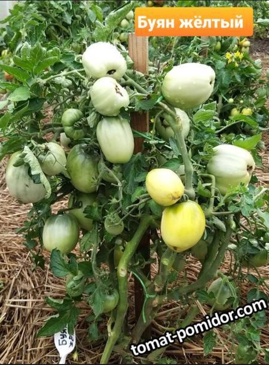 Не са чак толкова ниски. Отглеждал съм и жълти, и червени Буяни (Бойци) до 50-60 см. Вкусни са, сладки и тръпчиви, с приятен доматен аромат. Чудесни са за буркани, салати или просто „на живо“ с пържени картофи. Но тази година сойници ги изядоха (въпреки че наблизо растяха доматени сортове Орлик, Новато, Съмит и Новичок - по някаква причина сойниците не ги докоснаха). Тайфун на 20-22 август събори и счупи Бойците, включително коловете им. Два от осемте храста от този сорт (четири жълти, четири червени) така и не се възстановиха.