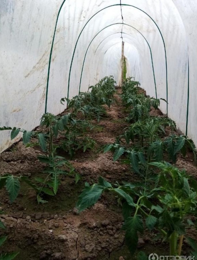 Нашият домат е засаден в оранжерия, въпреки че производителят на семена набляга на открита земя.
