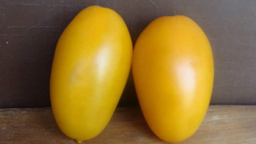 Доматите са с овално-цилиндрична форма, с цвят от бледозелен до жълтеникав и червен. Плодовете могат да се берат от храста в техническата зрялост и в домашни условия ще узреят до желаната зрялост. Тежат между 70 и 180 грама, имат сочна плът и съдържат 3-4 семенни камери.