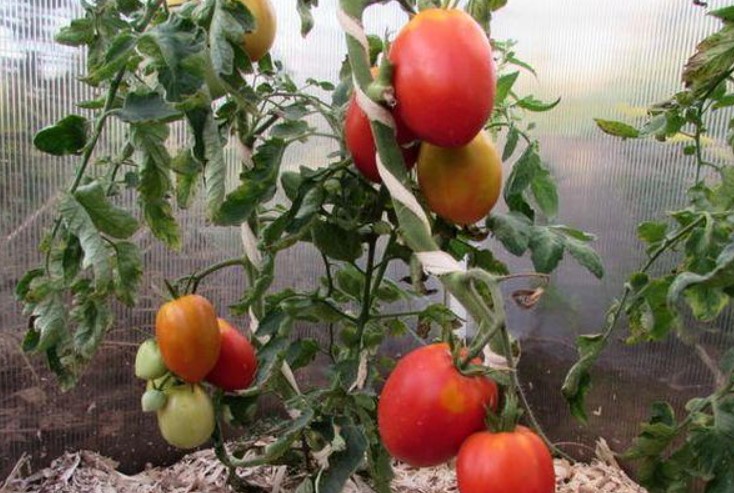 Неопределен сорт със средносрочен период на зреене. Използва се предимно за оранжерийно отглеждане. Листата е средно голяма, а храстите едва достигат 200 см височина. Летосите се връзват и прищипват, докато растат; храстът изисква оформяне. Подходящ е за салати и всички видове консервиране. | Плодовете са овални, с лъскава розова кора и гладък връх, 80-100 г. Вкусът е отличен. |