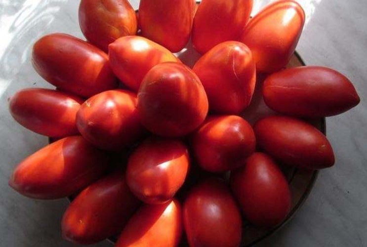 Средно ранен детерминантен сорт за открита почва. Подходящ за консервиране. Изисква повишени дози калиев тор. | Удължена сливова форма със заострен връх, гладка, червена, 34-58 г. Добър вкус. |