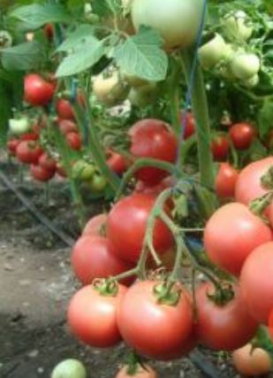Ранозреещ детерминантен сорт за оранжерии. Подходящ за салати. | Кръгли, леко оребрени, средно плътни, розови, 150-200 г. Отличен вкус. |