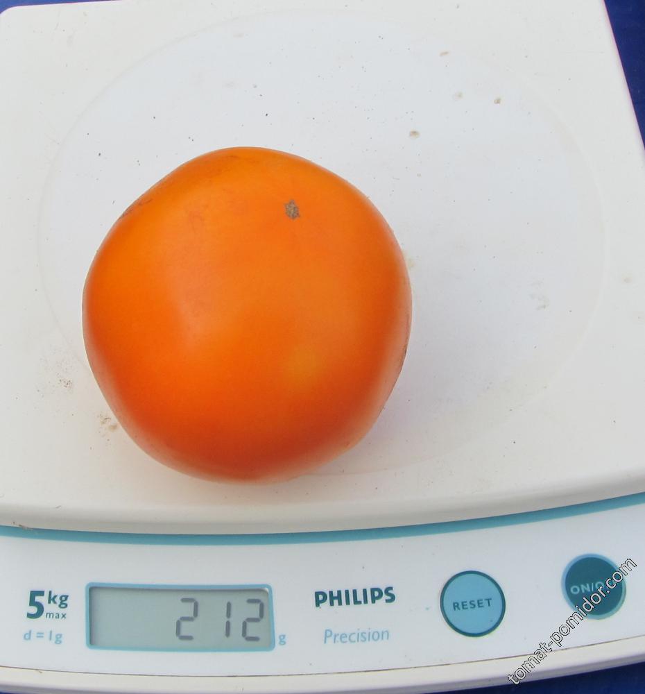 Ранен неопределен сорт. Отглеждането на открито е приемливо в по-топлите райони. В централна Русия се препоръчва засаждане в оранжерии. Подходящ за салати. | Кръгли, оребрени, оранжеви, до 300 г. Отличен вкус. |