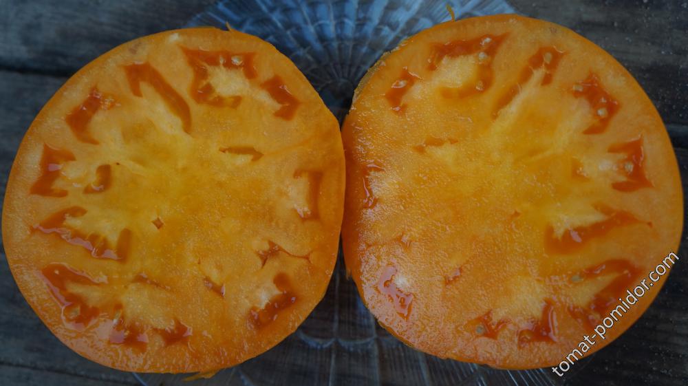 Доматите са много сочни и сладки. Почти нямат тръпчивост. Но доматите "Меден Спас", за които писах по-рано, са ми по-вкусни. И в сравнение с друг сорт портокал, "Оранжев слон" от Гавриш, който също рецензирах, "Меденият гигант" беше по-вкусен.