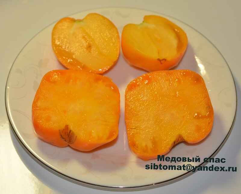 Купувам семена от домати „Меден спас“ от Сибирска градина от почти пет години. Наистина харесвам вкуса им. Доматите са сладки и меки. Това е среднозреещ, висок сорт. Растенията са средно високи 1,5 метра. Засаждат се на открито, но могат да се отглеждат и в оранжерии.