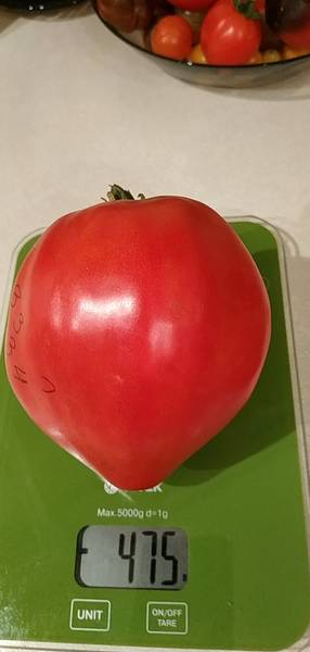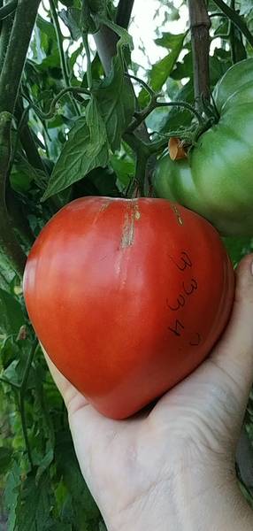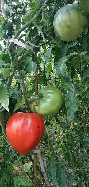 Отглеждани в оранжерия - неопределени, правилни листа, плодовете са кръгли, сърцевидни, розови, тегло от 150 до 400 г.