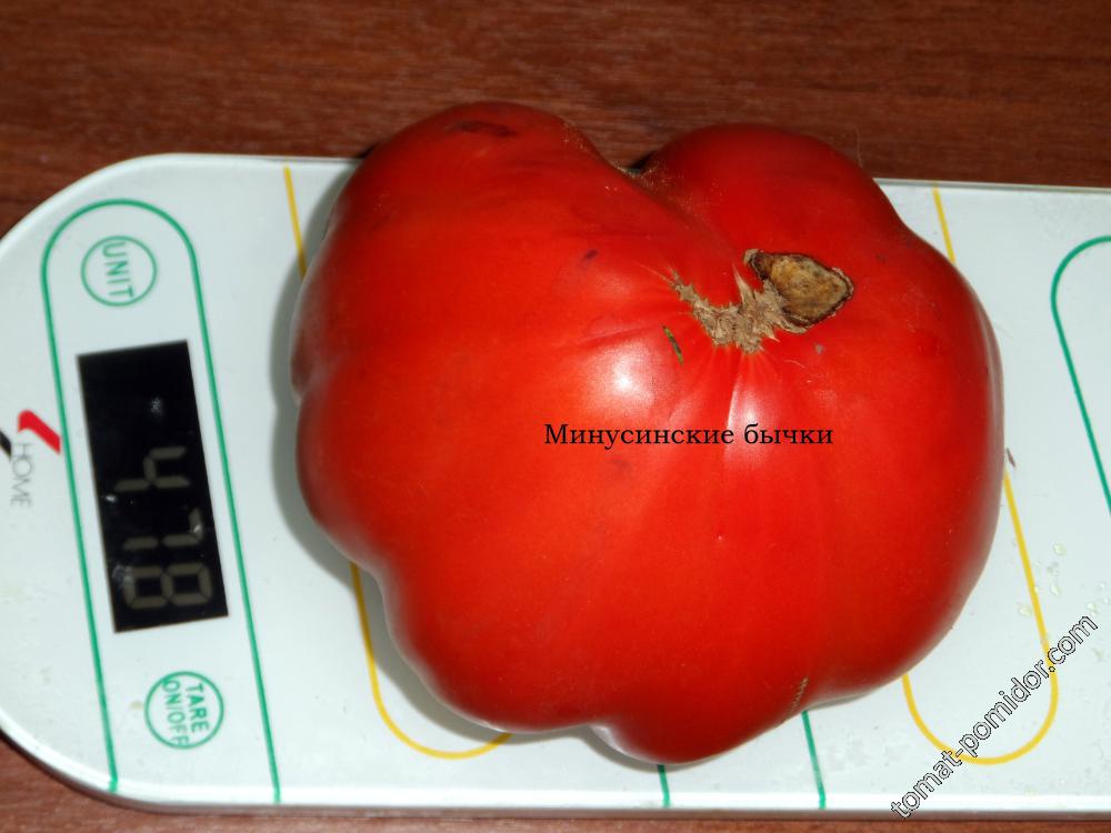 Друг представител на народната селекция на Минусинск е доматът Минусинск Бички. Плодовете му се характеризират с универсален размер, приятен вкус и добив, който ще впечатли всеки градинар.