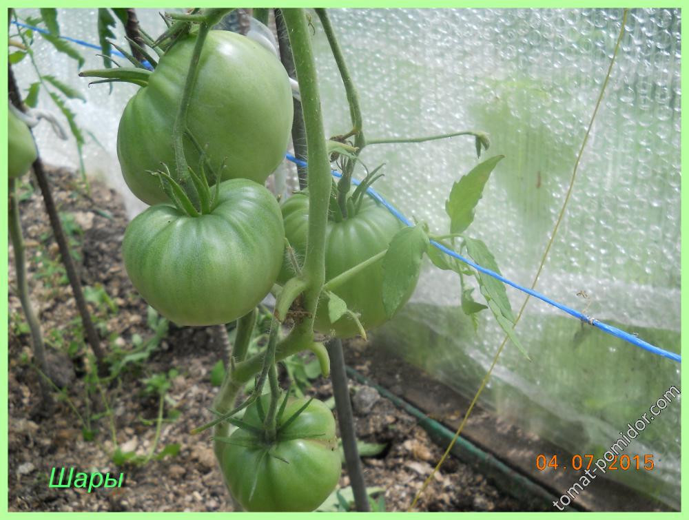 Минусинск Шари (Minusinssk Shary) височина: 1,7 м, кръгло-сърцевидна, крехка с тънка листа. Долните слоеве се оформиха добре. Доматите се оказаха доста големи и червени. Вкусът им беше сочен, с много семена, като домат. Когато ги нарязах, бях разочарован: доматът имаше много тънки стени.