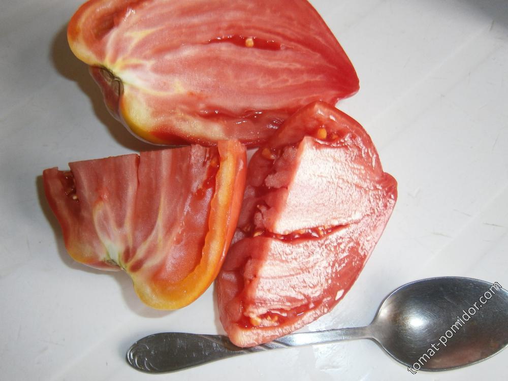Среднозреещ индетерминантен сорт за оранжерии. Подходящ за салати, консервиране и преработка в доматени продукти. | Овални, гладки, оранжеви, розови или червени, до 400 г. Добър вкус. |