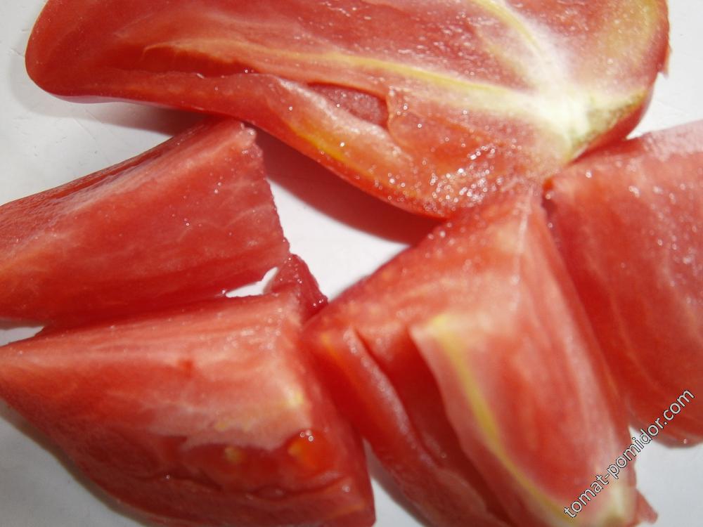 Цветът на кожицата варира в зависимост от сорта и може да бъде розов, червен или оранжев (жълт). Самата кожица е дебела, което позволява на доматите да останат свежи дълго време, без да се напукват.