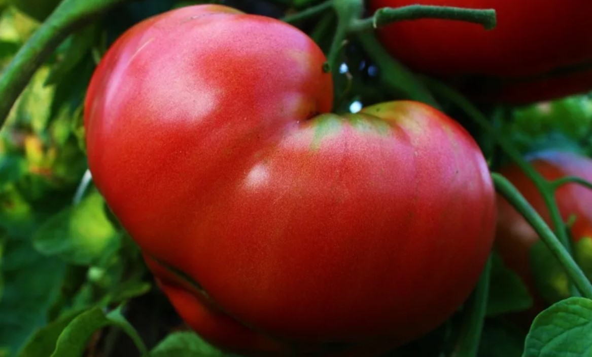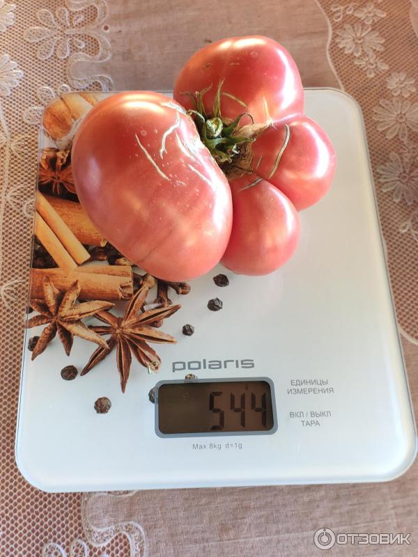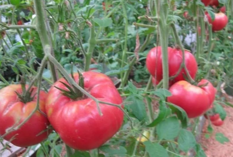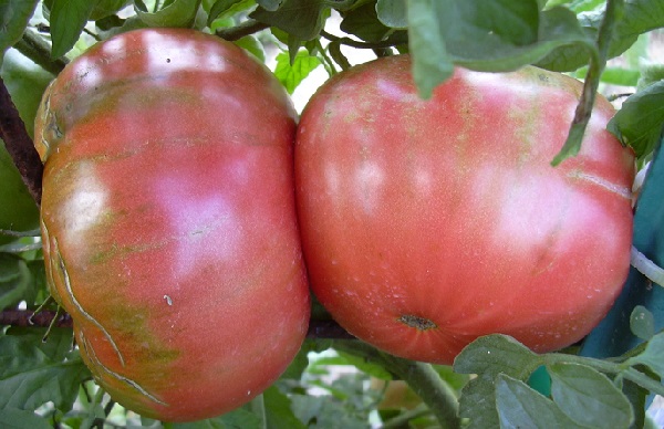 | Описание на плода | Доматите са едри, плоскокръгли, розови на цвят и имат ясно изразени оребрени ръбове. |