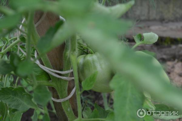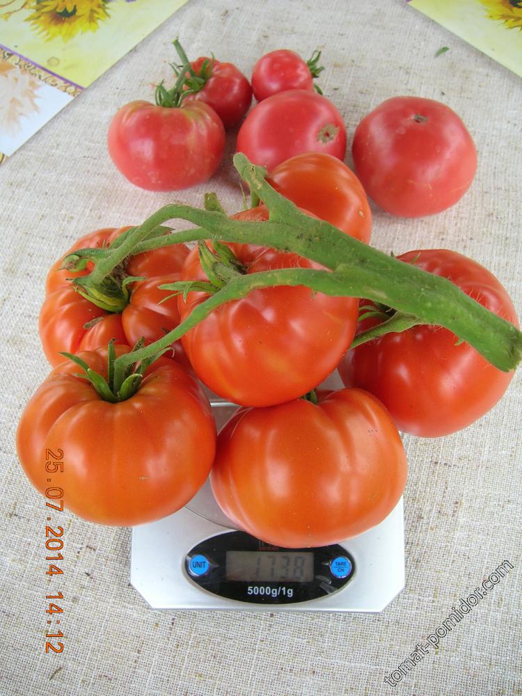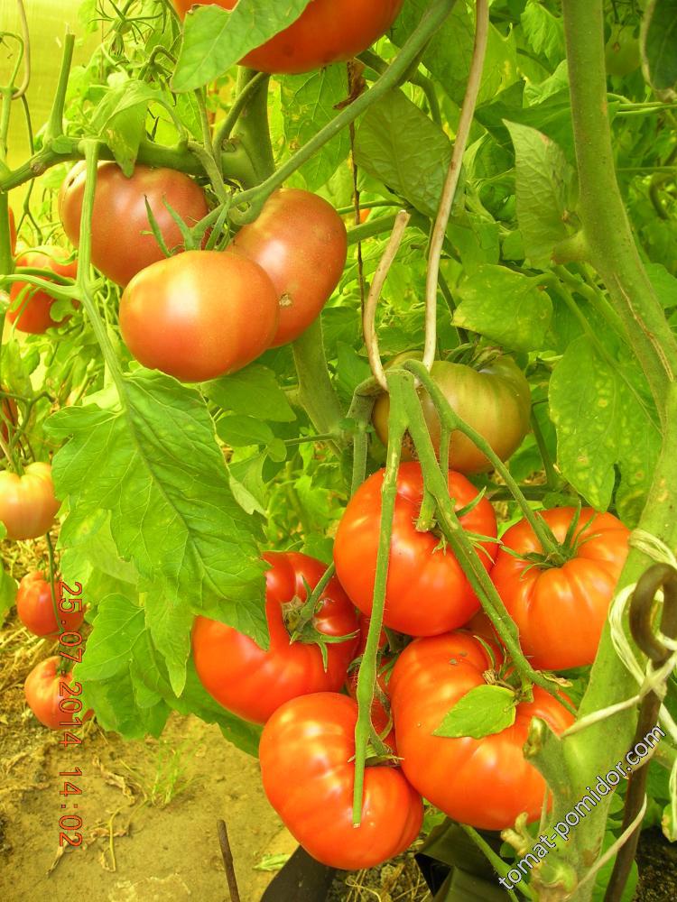 Този домат изисква постоянно прищипване, подпъхване и много, много здрави опори. Необходими са също поливане, торене със сложни торове, разрохкване на почвата и борба с плевелите.