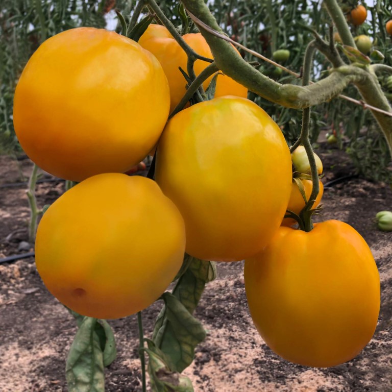 Средно ранен индетерминантен сорт за оранжерии. Подходящ за салати. | Сърцевидни, оребрени, яркожълти, 400-500 г. Отличен вкус. |