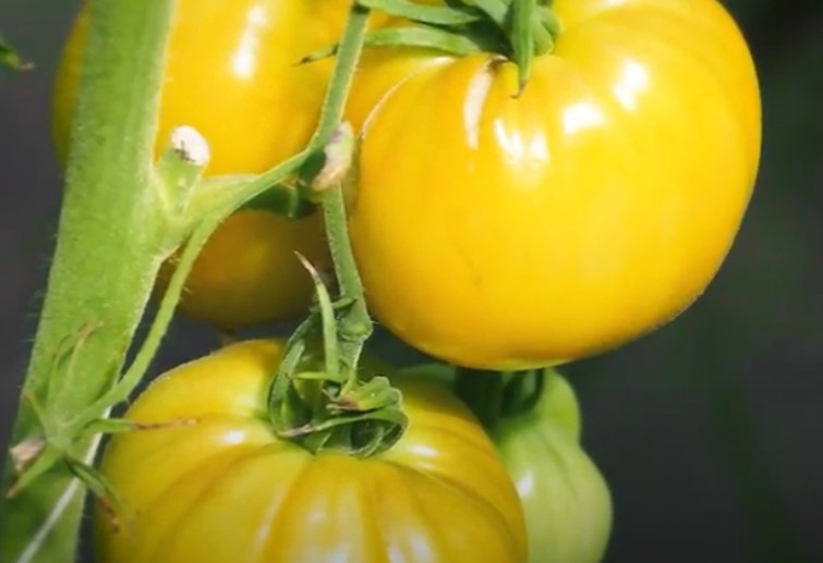 Среднозреещ индетерминантен сорт за открита земя и оранжерии. Изисква подравняване и оформяне. Подходящ за салати. | Плоско-кръгли, средно оребрени, месести, жълти, 350-380 г. Добър вкус. |