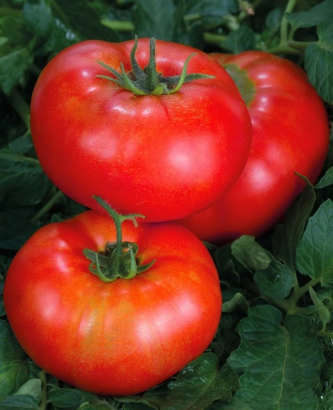 Среднозреещ индетерминантен сорт за открита земя и оранжерии. Изисква подравняване и оформяне. Подходящ за салати. | Плоско-кръгли, оребрени, плътни, розови, 354 г. Отличен вкус. |