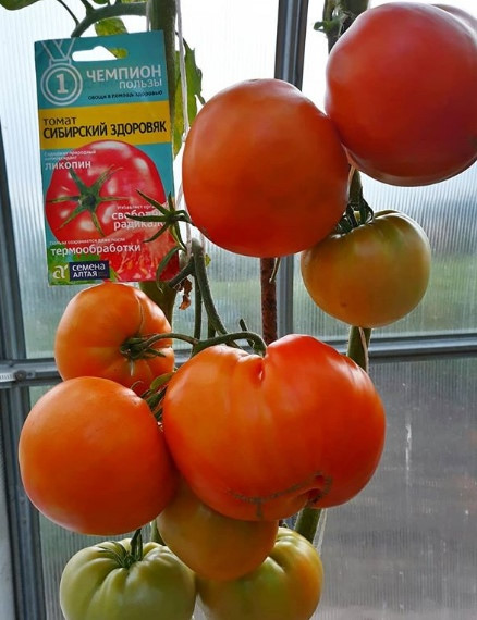 Сибирският Здоровяк е сорт домати, първоначално селектиран за отглеждане в суровите условия на Сибир. По-късно се разпространява в цяла Русия, печелейки любовта и признанието на градинарите. Освен отличния си добив, той се гордее с истинско сибирско здраве и е напълно лесен за отглеждане.