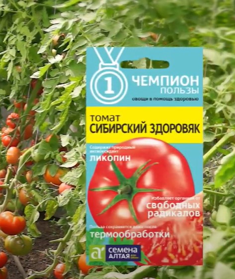 Сортът „Сибирски Здоровяк“ е разработен от земеделската фирма „Семена Алтая“. Неговите селекционери реализират проект, наречен „Шампиони на здравето“, който представя на потребителите най-здравословния сорт от всяка култура. В категорията домати, доматът „Сибирски Здоровяк“, който съдържа значително количество полезни вещества (ликопен, глутатион и др.), получи титлата „Шампион на здравето“. Въпреки тези свойства обаче, този домат в момента не е включен в регистъра.