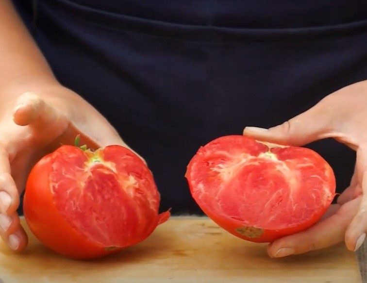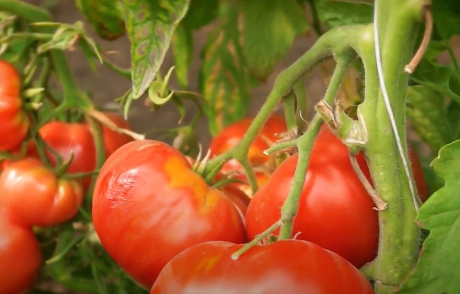 Кожата е гладка, държи добре формата си и предотвратява напукването на доматите по храстите.